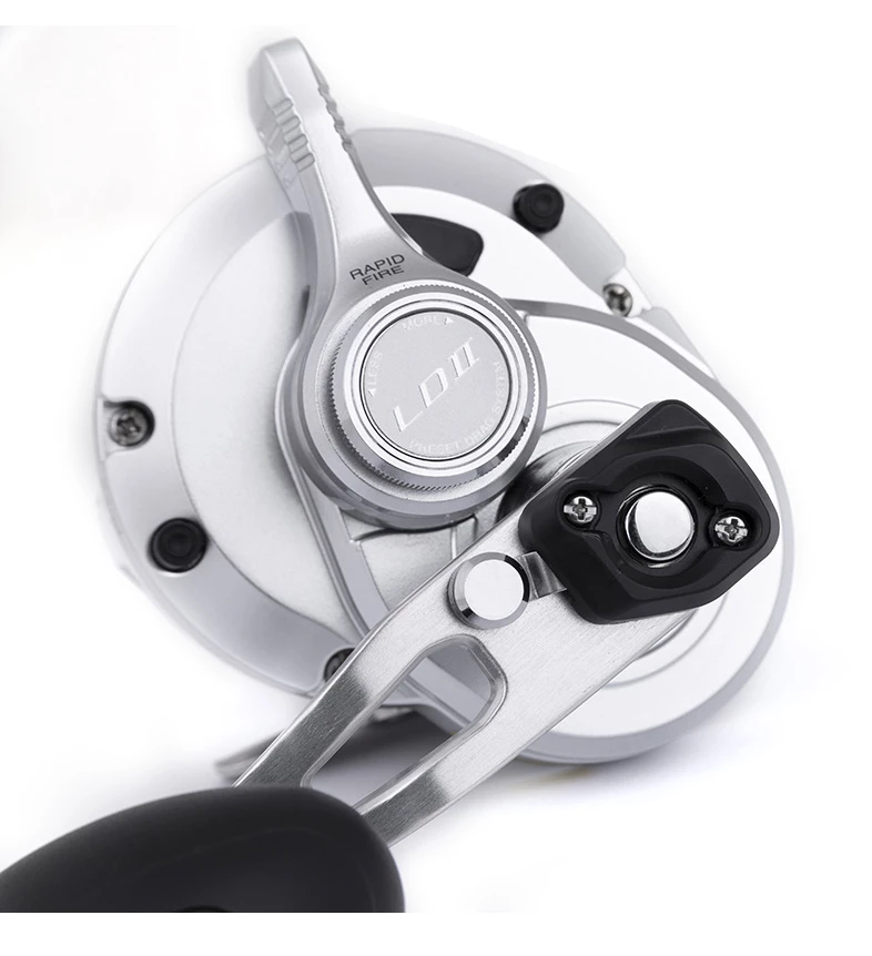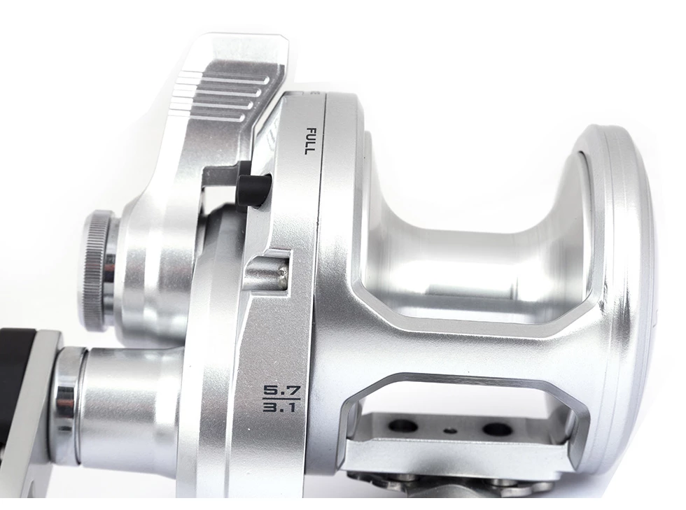 The Shimano Speedmaster LD II baitcasting reel is a sturdy reel designed for sea fishing. The Speedmaster is equipped with a handy toggle that allows you to switch the gear ratio while you are fishing. When you need to reel in your lure or bait quickly, choose the 5.7:1 ratio. When you need more power instead of speed, choose the 3.1:1 ratio that allows you to use the entire force of the reel.