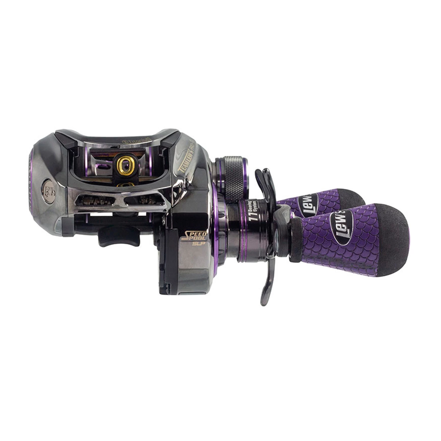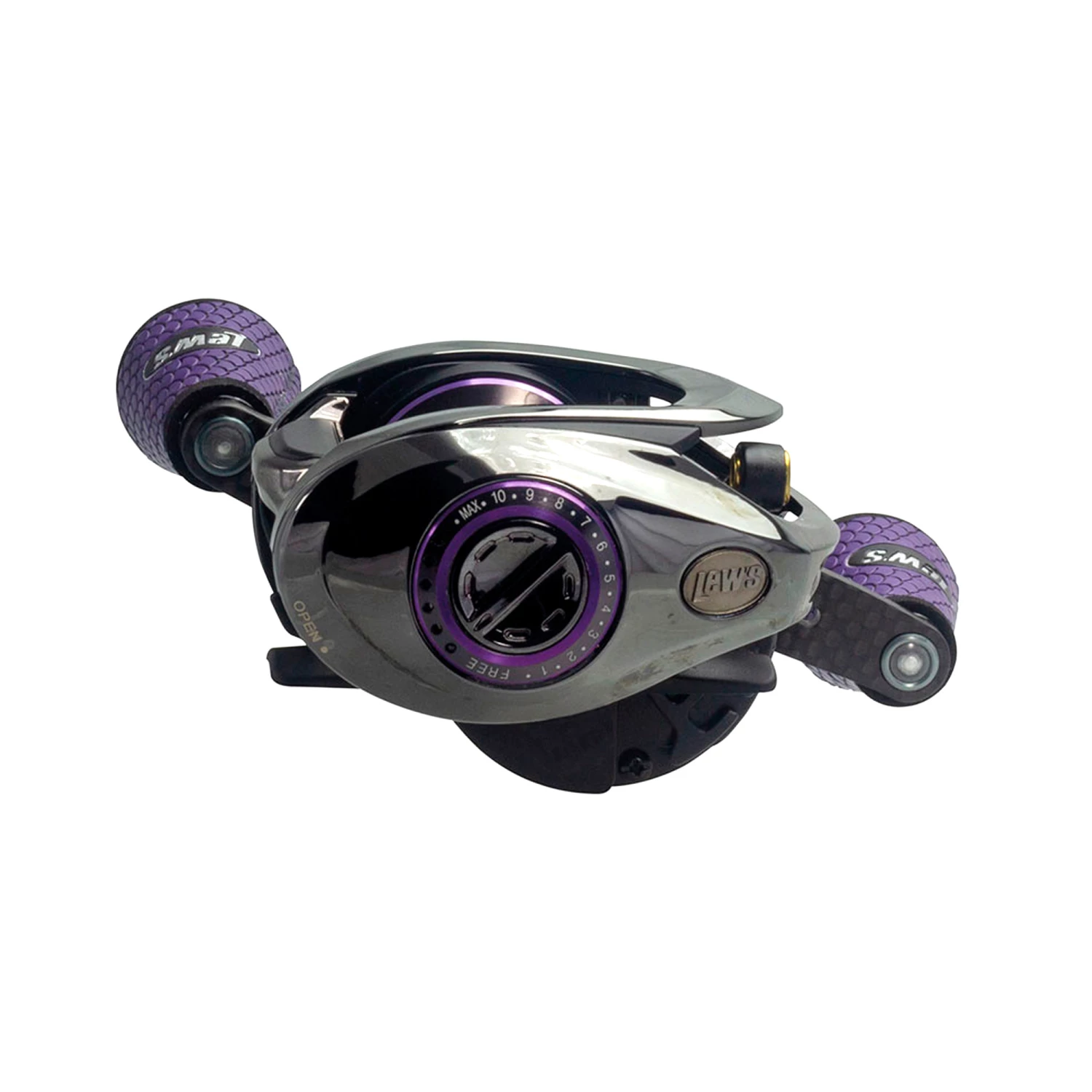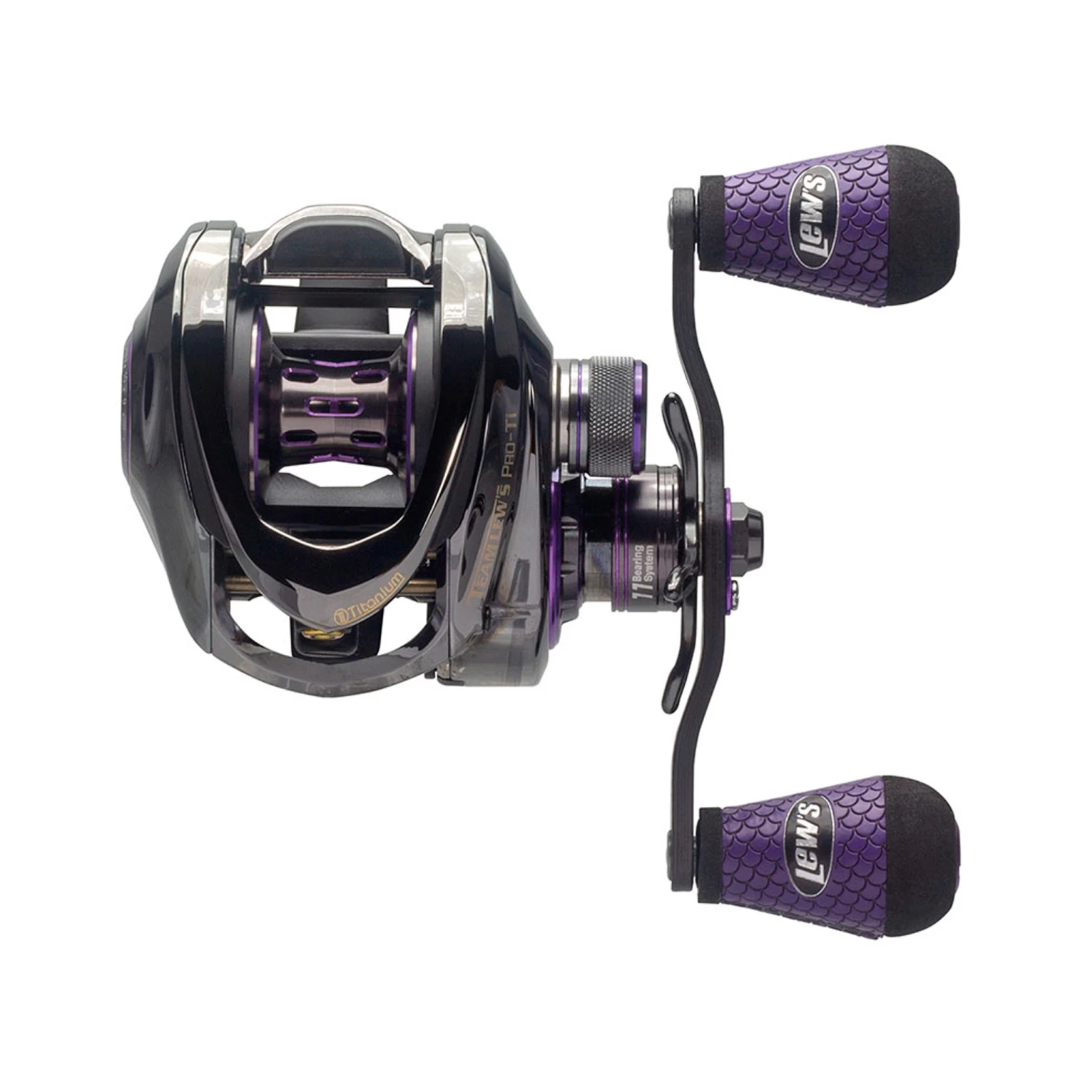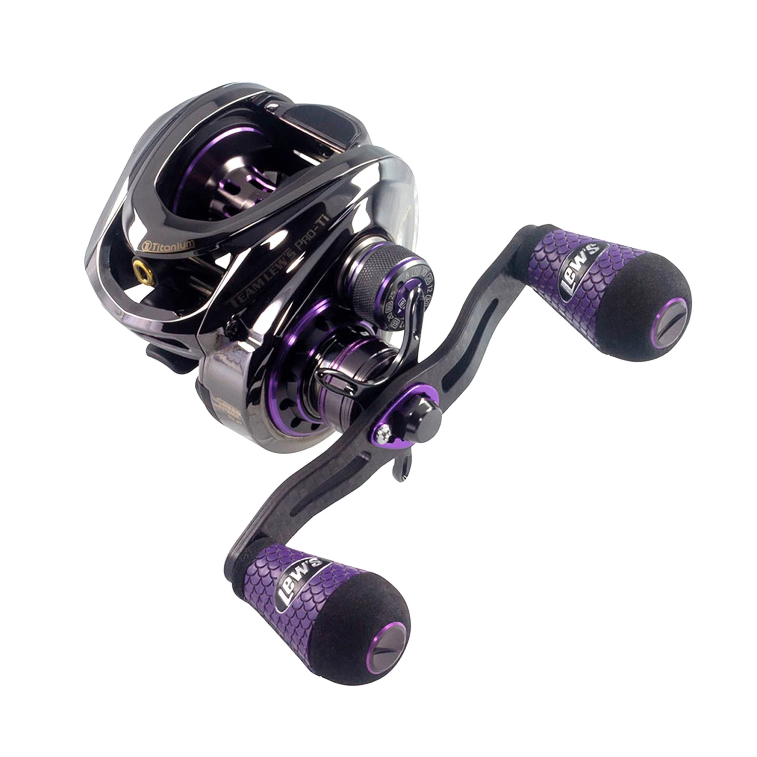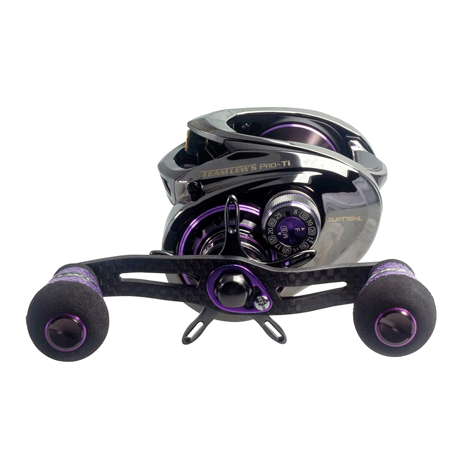Pro-Ti is a top of the line Super Low Profile reel with the shallowest reel profile available from Lew’s. The reel has a titanium-coated aluminum housing. Pro-Ti is equipped with Hamai CNC precision machined Speed Gear gearing made from resilient aluminum alloy. Other features include an adjustable 6-pin and 27-step QuietCast centrifugal braking system (ACB), 11 premium-quality bearings, and a reinforced carbon fiber drag system that provides unbelievable performance.
