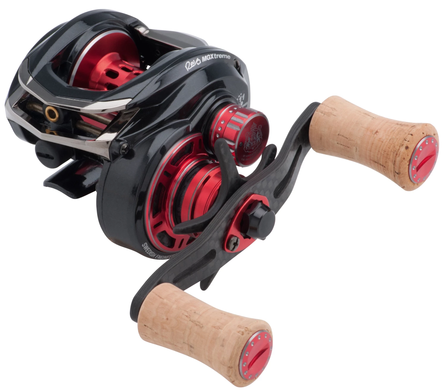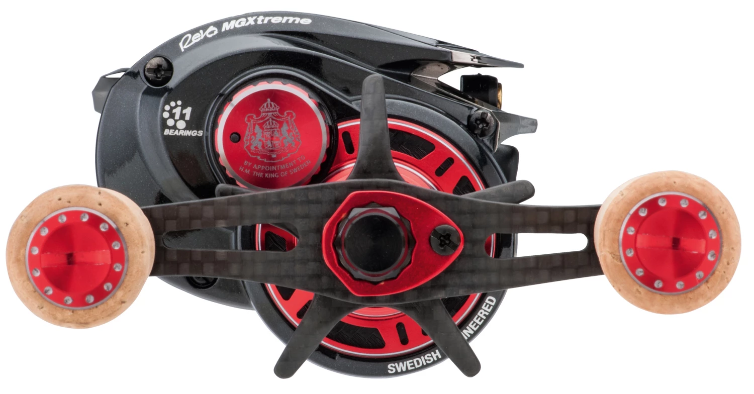 The new MGXTreme is the lightest Revo reel ever made: it weighs only 128 grams! With this reel, nothing was left to chance. The reel was made to give you the ultimate angling experience! Can a low-profile reel get any lighter than this? We doubt it. The reel boasts 11 ball bearings that guarantee silk-smooth operation and excellent casting distance. The ultra-light carbon fiber handle has been bent slightly inward to improve the feel. The new flashy and high-quality cork handle knobs are ergonomically shaped for the best possible grip. The Infini II spool design guarantees even longer casts than before. Eight stainless HPCR ball bearings and two CeramiLife spool bearings add even more length to the casts. The X-Mag aluminum frame, machined from a single piece, and C6 carbon side plates make this reel incredibly lightweight yet very sturdy.