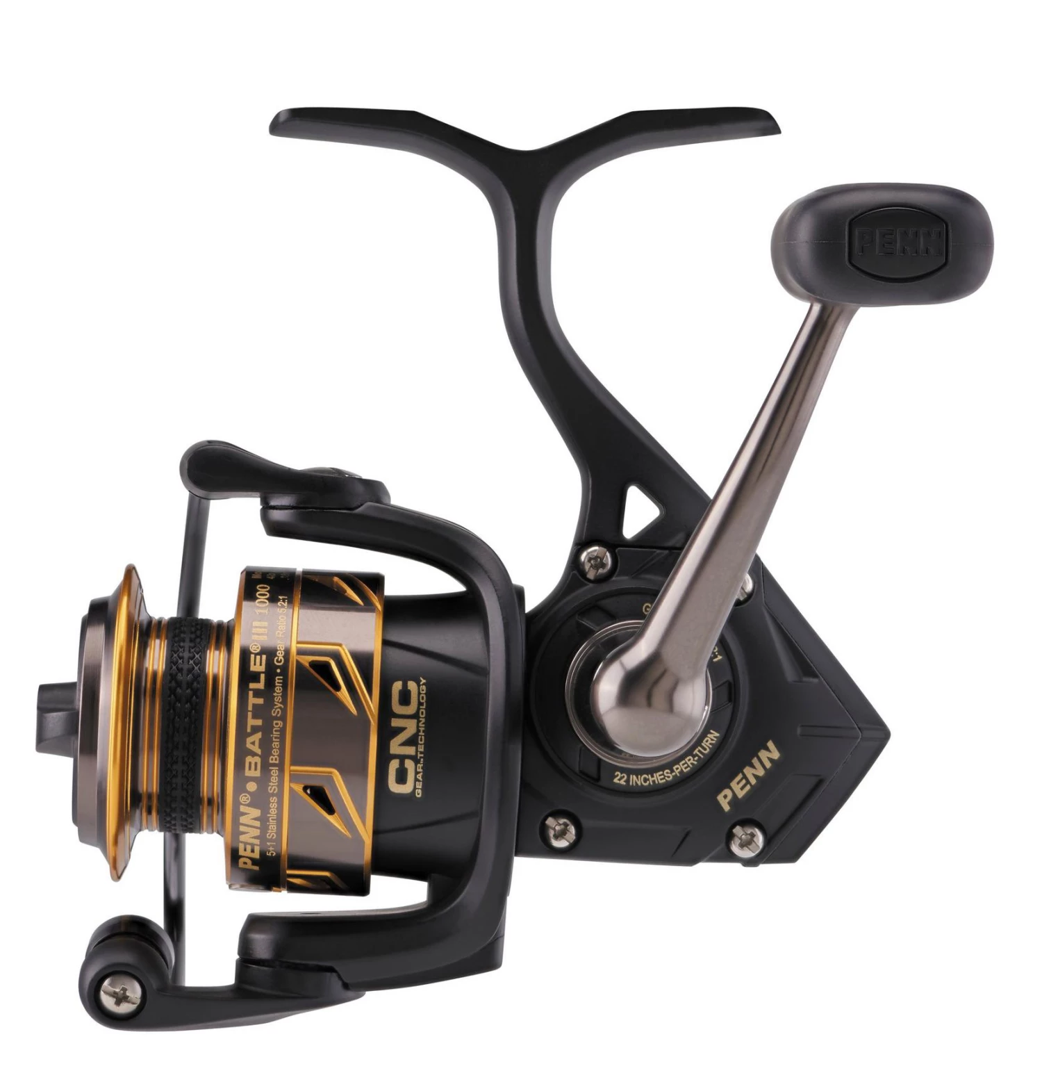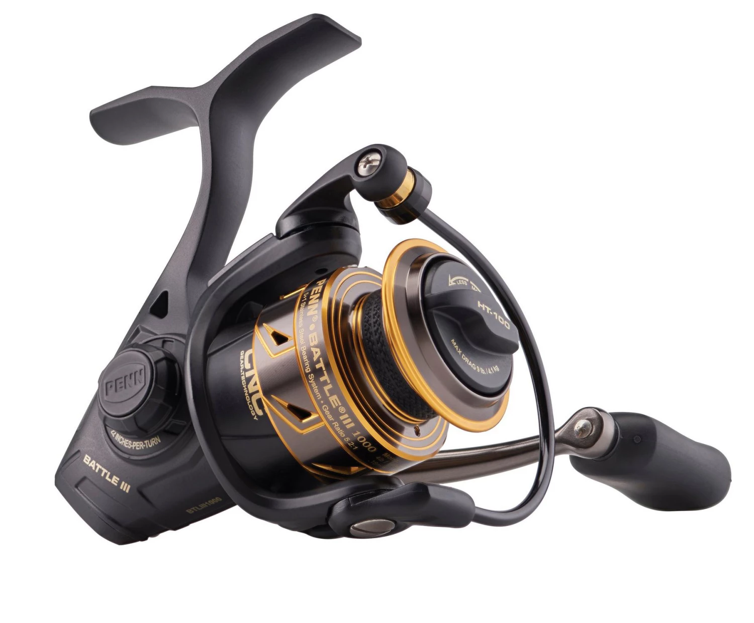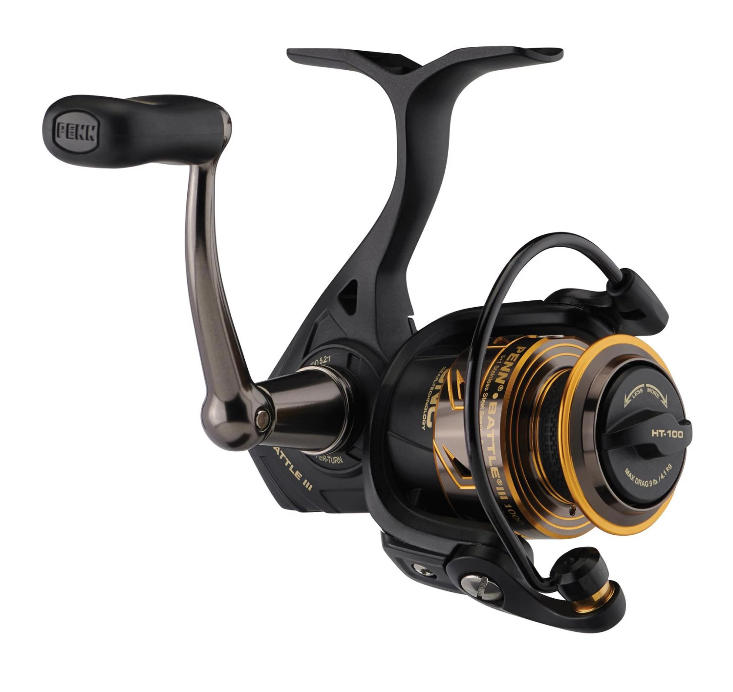 The Penn Battle III spinning reel range is the third version of the successful Battle reel range, which has been improved even further! Penn Battle is made for tough battles. The Full Metal Body is sturdy and the resilient HT-100β’ fishing drag won’t fail you when you are fighting your record fish. The reel is also suited for saltwater use, as all its bearings are shielded as we have come to expect.